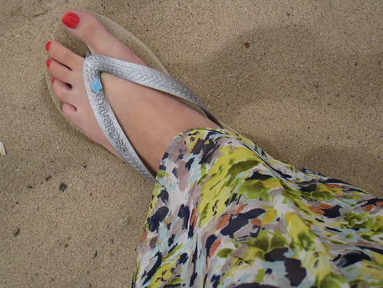 Here are pics from last night’s event kicking off the havaianas pop-up shop on Chicago’s North Ave. Beach. (from top to bottom) I’m joined by my event co-hosts; posing with my talented intern Cody just before making our own pair of havaianas; my custom beige with pewter strap flip flops I personalized with a blue birdie adornment. Want to make your own pair? The pop-up shop will be open Thurs-Sun (11am-7pm) through July 31st!
